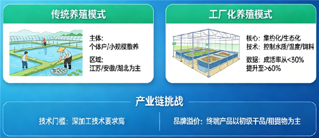 技术纵深与规范之坎:上游养殖仍受困于病害与成活率波动,影响原料稳定供应。下游深加工需要跨生物化学、制药工程的多学科技术支持,门槛高。全行业缺乏统一的活性检测国家标准,依赖企业自控或国际送检,品控水平参差。