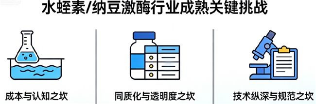 尽管前景广阔,但水蛭素/纳豆激酶行业要走向完全成熟,仍需跨越几道关键坎: